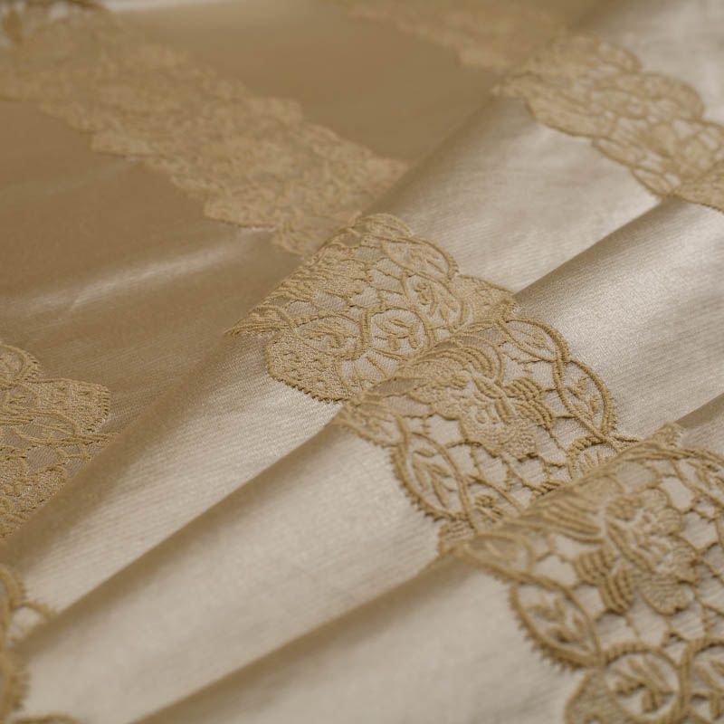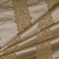Итальянский жаккард на основе хлопка с добавлением шелковых нитей. Однотонный благородный основной оттенок декорирован ажурными стильними, утонченными, вертикальными полосками с флористическими мотивами. Ткань отлично впишется в любой интерьер – от классики до модерна. Подойдет для пошива покрывал, наволочек, легкой обивки мебели и других элементов декора.