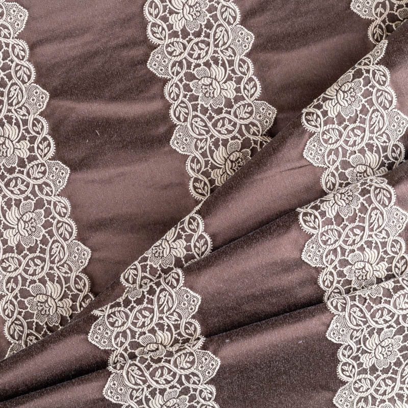 Итальянский жаккард на основе хлопка с добавлением шелковых нитей. Однотонный благородный основной оттенок декорирован ажурными стильними, утонченными, вертикальными полосками с флористическими мотивами. Ткань отлично впишется в любой интерьер – от классики до модерна. Подойдет для пошива покрывал, наволочек, легкой обивки мебели и других элементов декора.