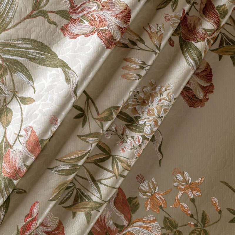Величественность и роскошь классики и поэтический флер – все это о коллекции цветочных итальянских жаккардов. Как будто тисненая поверхность ткани в сочетании с цветочным дизайном и/или классической полоской делают коллекцию идеальной для создания предметов текстильного декора, которую можно назвать произведением искусства, а трендовые цвета дают тканям актуальность и свежее звучание. Этот жаккард украсит помещение любого назначения, как классическое, так и современное. Он отлично подойдет для декора окон, пошива штор, портьер, ламбрекенов, покрывал, подушек и обивки мебели.