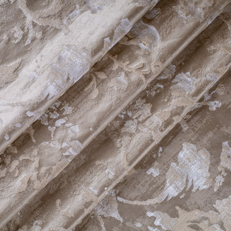 Итальянская жаккардовая портьерная ткань в благородной цветовой гамме с цветочно-растительным орнаментом. Ткань хорошо драпируется. За счет сочетания шелковых и льняных нитей рисунок как будто вытравлен на поверхности ткани. Подходит для пошива штор, ламбрекенов, покрывал, наволочек, чехлов на мебель и других элементов декора для стилизованных классических интерьеров.