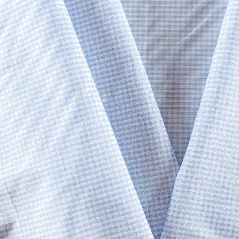 Итальянский плательно-рубашечный хлопок в голубую клеточку. Ткань мягкая, лёгкая, непрозрачная, пластичная и приятная к телу, хорошо драпируется, имеет гладкую матовую поверхность и сатиновое плетение. Прекрасно подойдет как для пошива платья-рубашки, сарафана, платьев различных фасонов, туники, топа, летнего костюма, комбинезона, детской и мужской одежды.
