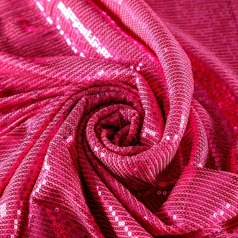 Блестящие пайетки ярко-розового оттенка. Мелкие, размером около 3 мм. Основа - трикотажное полотно, комфортное в носке. Ткань не прозрачная, тянется.  Подойдет для вечернего коктельного платья или юбки, комбинезона, топа, танцевальных и сценических костюмов.