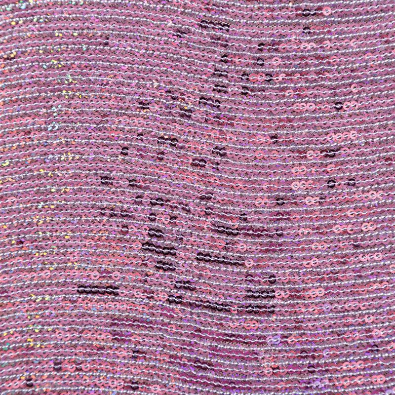 Эластичная сетка сиреневого оттенка по всей поверхности которой расположены глянцевые пайетки. Ткань очень хорошо драпируется, красиво переливается, имеет глянцевый блеск, пластичная, полоски расположены вдоль кромок, которые обработаны вышитым фигурным фестоном, набирается объемом, Пайетки — идеальный материал для праздников и вечеринок. Из них получится эффектное платье, жакет, боди, туника, юбка или комбинезон.