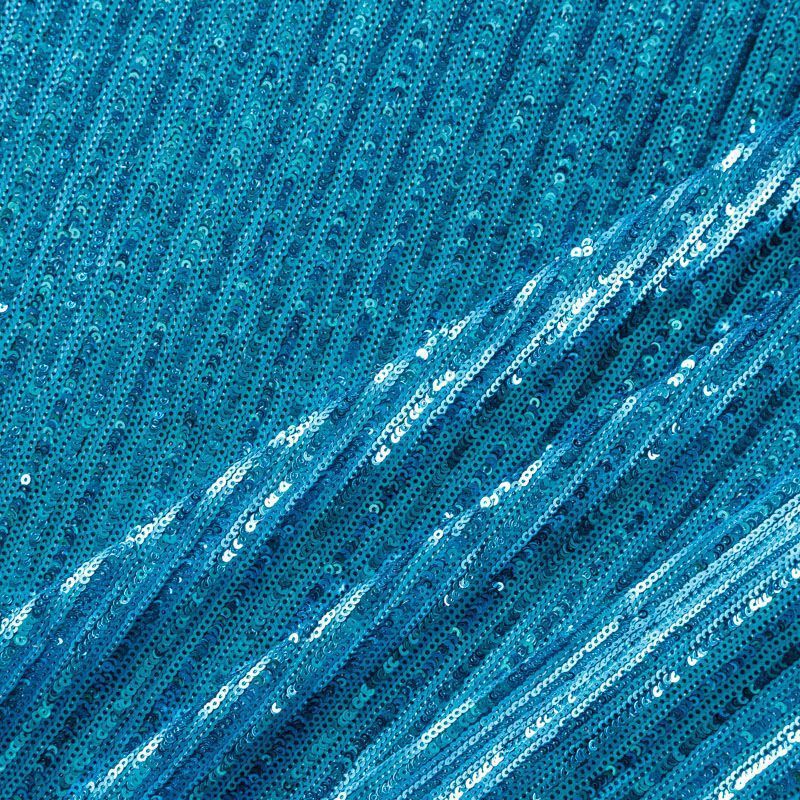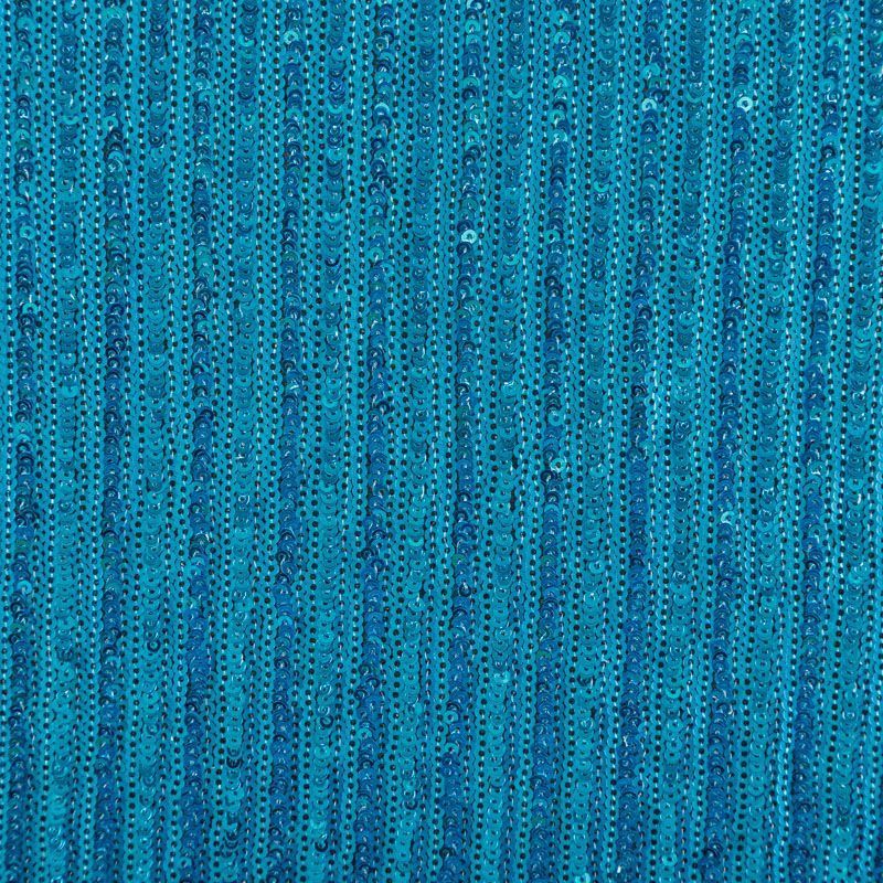 Пайетки на плотной сетчатой основе в тонкую чередующуюся полоску глянцевых и матовых блесток. Полоска расположена поперек полотна. Ткань хорошо драпируется, красиво переливается, имеет глянцевый блеск. Немного тянется, благодаря чему изделия получаются комфортными и отлично сидят по фигуре. Пайетки — идеальный материал для праздников и вечеринок. Из них получится эффектное платье, туника, юбка или комбинезон.