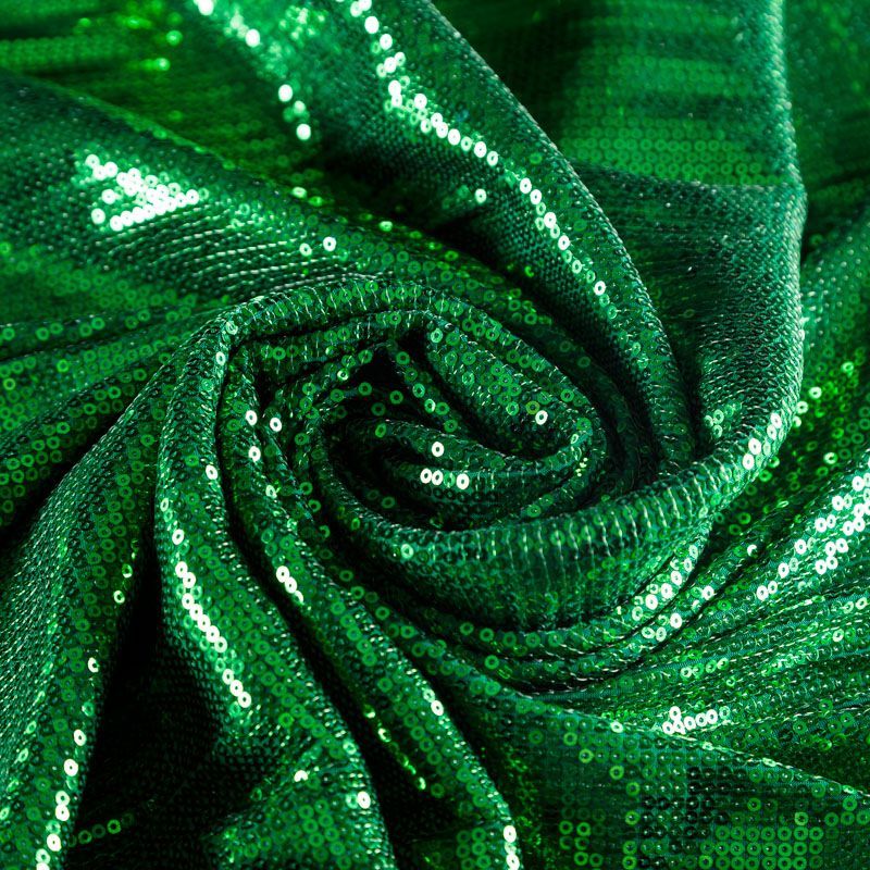 Блестящие пайетки сочного зеленого оттенка. Мелкие, размером около 3 мм. Основа - трикотажное полотно, комфортное в носке. Ткань не прозрачная, тянется.  Подойдет для вечернего коктельного платья или юбки, комбинезона, топа, танцевальных и сценических костюмов.