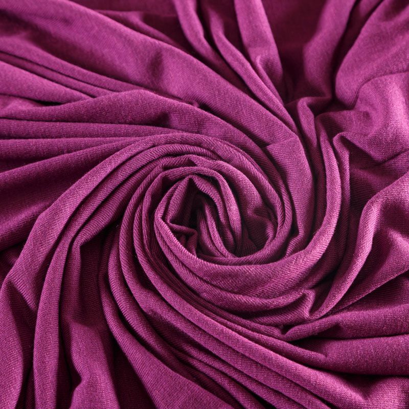 Трикотажное полотно пурпурного отенка очень приятное на ощупь, уютное и мягкое. Хорошо тянется, не светится, переплетение гладь. Подойдет для пошива топов, футболки, бадлонов, лонгслива, кардигана, спортивного платья.