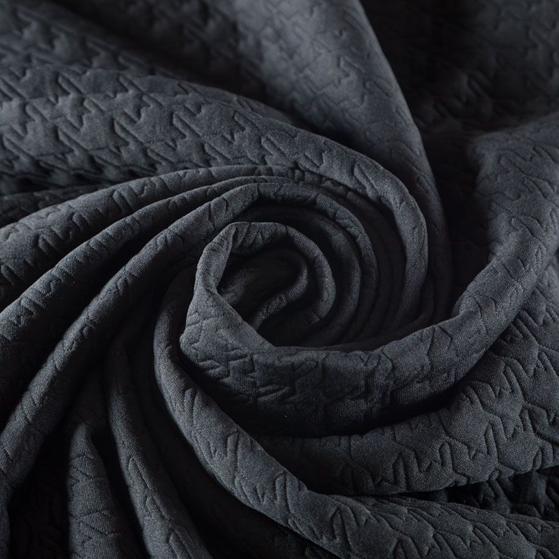 Плотное трикотажное полотно с имитацией стежки. Поверхность ткани объемная, мягкая, приятная на ощупь. Трикотаж не просвечивается, хорошо тянется за счет эластана в составе, держит форму. Прекрасно подойдет для пошива легких пальто, курток, бомберов, кардиганов, платьев, юбок, шорт.