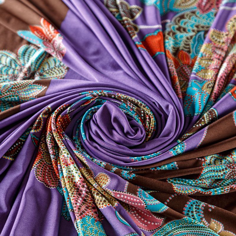 "Холодный" трикотаж средней плотности, хорошо тянется за счет эластана в составе. Ткань не сухая, мягкая, не просвечивает, хорошо драпируется. Отлично подойдет для пошива платья, туники, лонгслива, топа, юбки.