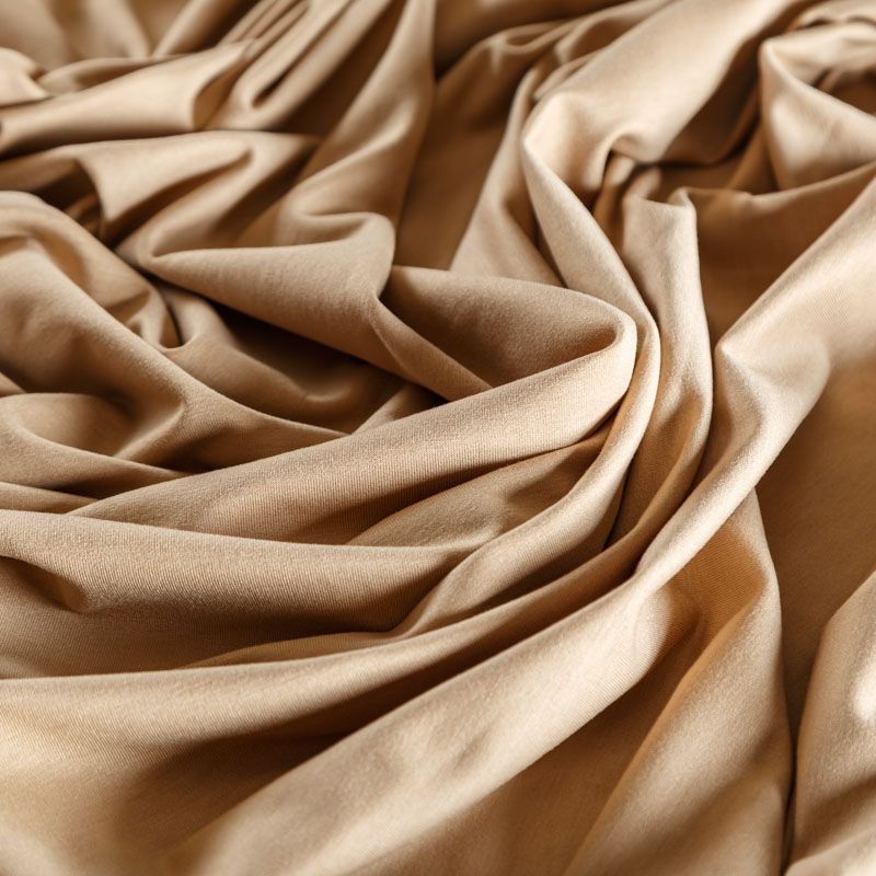 Смесовое трикотажное полотно с гладкой однородной поверхностью, которое особенно эффектно смотрится в драпировке. Материал средней плотности, не просвечивает, приятный к телу и комфортный в носке. Подойдет для пошива топов, футболок, бадлонов, лонгслива, кардигана, спортивного платья, джоггеров, шорт.