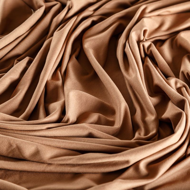 Смесовое трикотажное полотно с гладкой однородной поверхностью, которое особенно эффектно смотрится в драпировке. Материал средней плотности, не просвечивает, приятный к телу и комфортный в носке. Подойдет для пошива топов, футболок, бадлонов, лонгслива, кардигана, спортивного платья, джоггеров, шорт.
