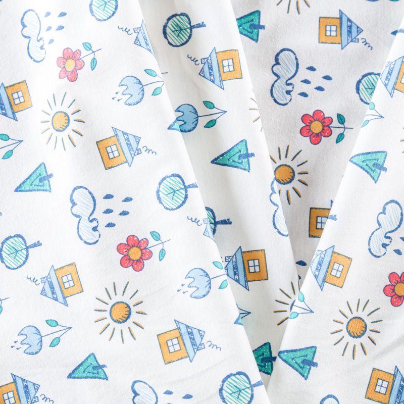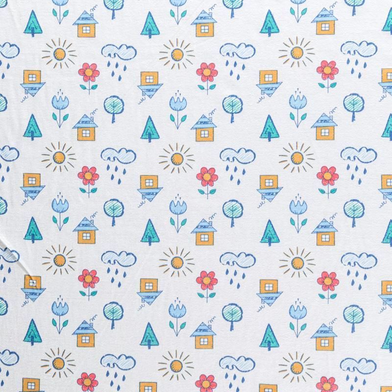 Приятный на ощупь, гладкий хлопковый трикотаж-кулирка с эластаном, средней плотности с веселым детским принтом. Подойдет для пошива нижнего белья, изделий для детей, а также для спортивной и домашней одежды, пижамы.