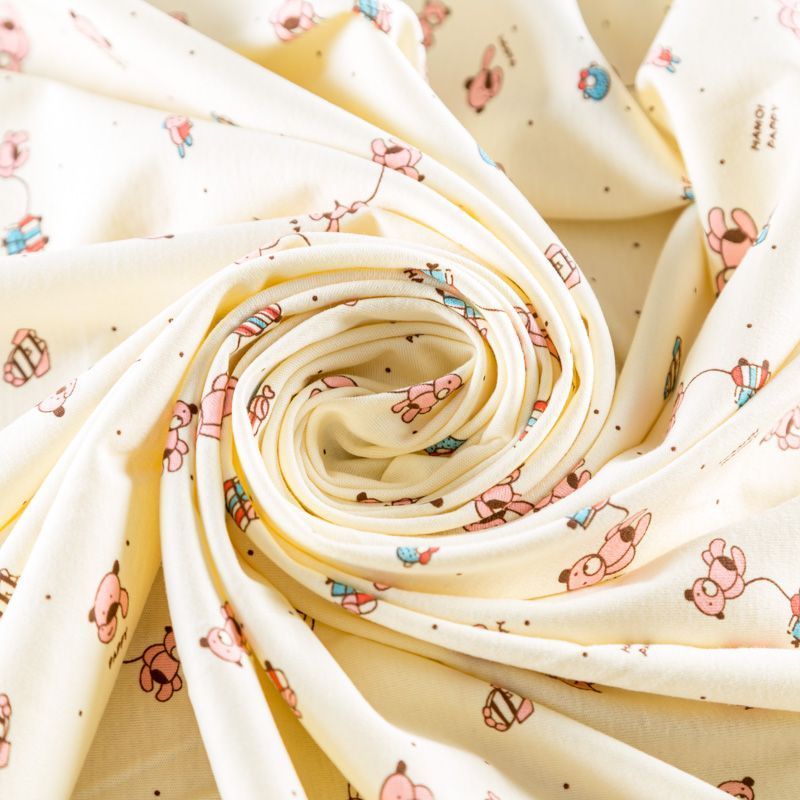 Приятный на ощупь, гладкий хлопковый трикотаж-кулирка с эластаном, средней плотности с веселым детским принтом. Подойдет для пошива нижнего белья, изделий для детей, а также для спортивной и домашней одежды, пижамы.