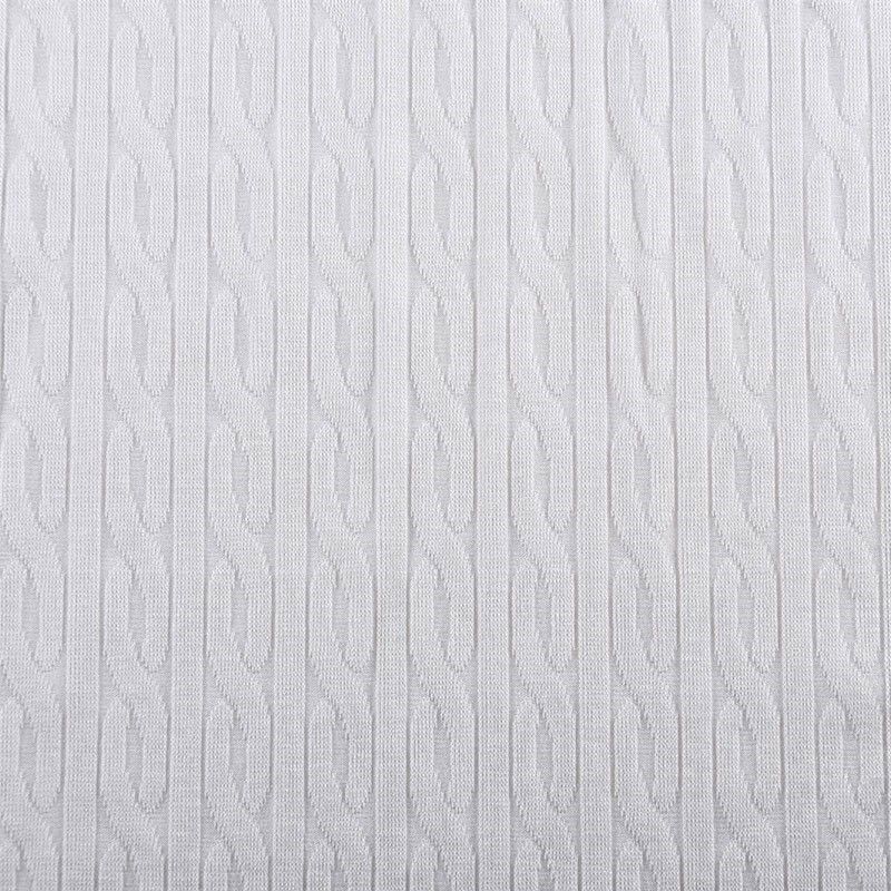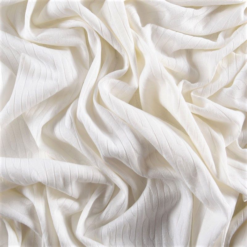 Текстурное вязаное, мягкое, пластичное полотно средней плотности. Вязаный узор - стилизованая косичка, расположен по всему полотну. Подойдет для пошива боди, топа, лонгслива, кардигана, юбки, платья, водолазок, снудов.