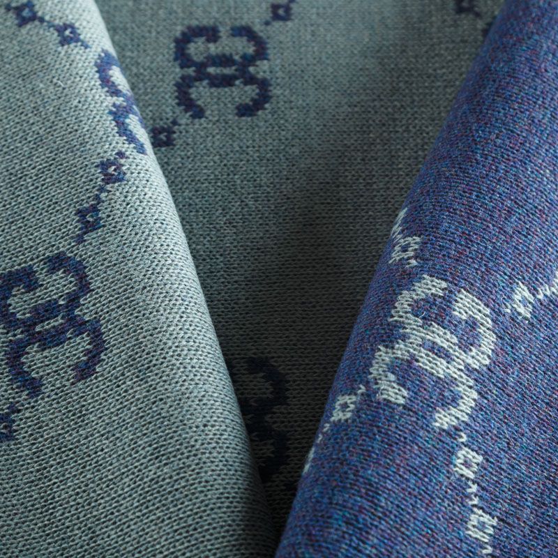 Итальянский теплый мягкий вязаный шерстяной трикотаж, два слоя которого соединены между собой жаккардовым геометрическим узором. Полотно очень пластичное, приятное на ощупь, не колется. При соответствующей обработке швов одежду из этого трикотажа можно носить на обе стороны. Подойдет для пошива теплых уютных свитеров, кардиганов, пальто, костюмов, теплого платья, свитшота, джемпера.