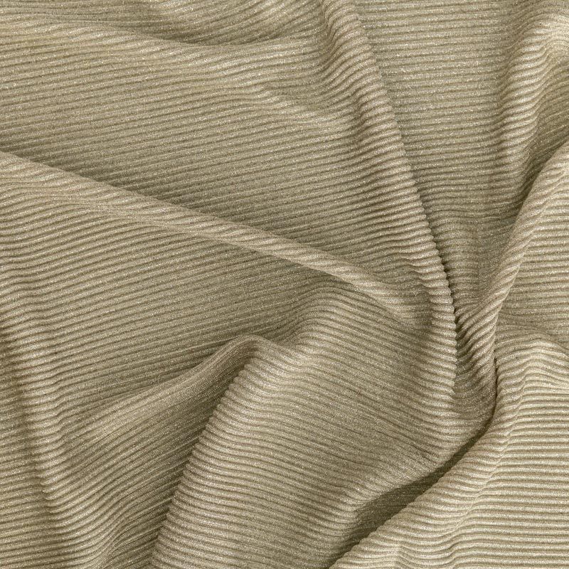 Легкая, слегка прозрачная ткань, с высокой степенью эластичности, поверхность рельефная за счет эффекта гофре и мерцающая за счет напыленного люрекса. Идеальна для облегающих изделий с использованием подклада, платья, топа, юбки, брюк, кардигана. Полоски гофре расположены поперек кромки, набирается объемом.