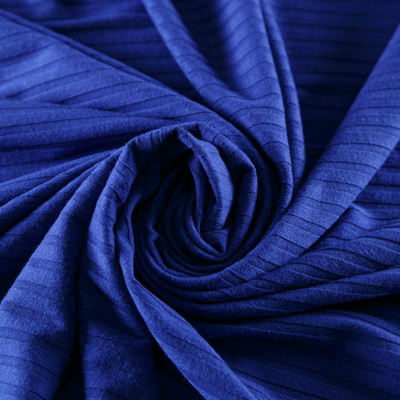 Трикотаж-лапша средней плотности, с высокой степенью эластичности, поверхность рельефная за счет эффекта резинки. С изнанки трикотаж гладкий, комфортный, подходит для использования без подклада. Сшить из такого полотна можно топы, лонгсливы, водолазки, платья,  юбки, брючные комплекты. Направление полос - вдоль линии кромки.
