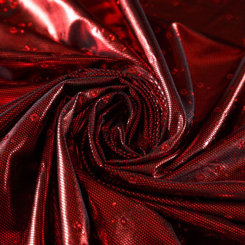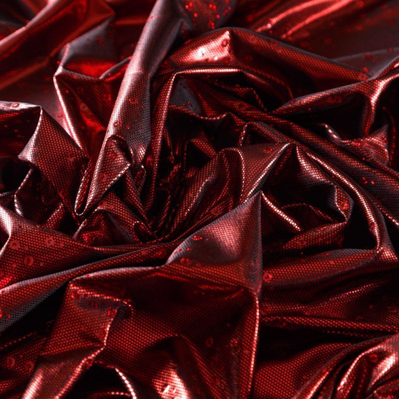 Эффектное трикотажное полотно с насыщенным глянцевым блеском. Материал очень пластичный, образует струящиеся мягкие складки, отлично тянется, не просвечивает, не мнется. Изнаночная сторона матовая, приятная на ощупь. Идеальный выбор для нарядных моделей, гимнастических и танцевальных костюмов.
