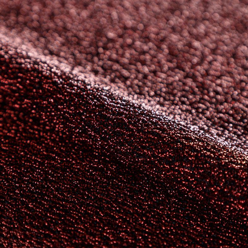 Трикотажное полотно с металлизированным блеском и мерцанием. Люрексные нити бордового оттенка вплетены в структуру полотна и создают объемный "вспененный" эффект, при этом изнанка гладкая и ровная. Ткань очень приятная к телу, не колется, не просвечивается, очень эластичная, отлично драпируется и ниспадает, красиво ляжет по фигуре. Идеальный вариант для пошива вечерних и нарядных платьев облегающего силуэта, топов, комбинезона, юбки, широких брюк, туник, кардиганов, накидок.