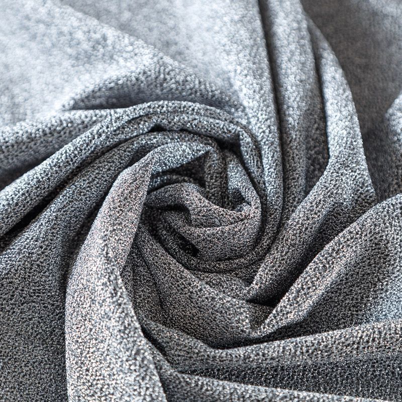 Трикотажное полотно с металлизированным блеском и мерцанием. Люрексные серебристые нити вплетены в структуру полотна и создают объемный "вспененный" эффект, при этом изнанка гладкая и ровная. Ткань очень приятная к телу, не колется, не просвечивается, очень эластичная, отлично драпируется и ниспадает, красиво ляжет по фигуре. Идеальный вариант для пошива вечерних и нарядных платьев облегающего и свободного силуэта, топов, комбинезона, юбки, широких брюк, туник, кардиганов, накидок.