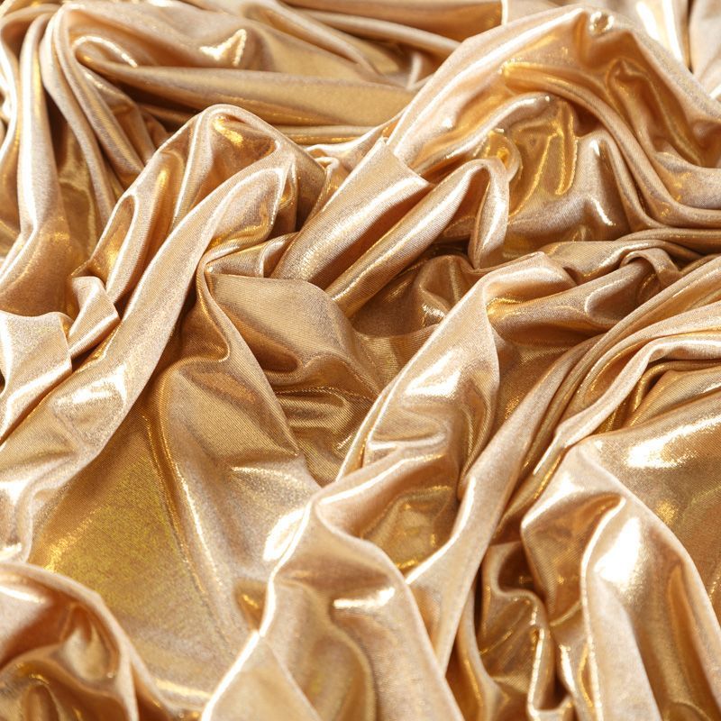 Эффектное трикотажное полотно с мерцающим напылением. Материал очень пластичный, образует струящиеся мягкие складки, отлично тянется, не просвечивает, не мнется. Изнаночная сторона матовая, приятная на ощупь. Идеальный выбор для нарядных платьев, топов, маек, гимнастических и танцевальных костюмов.