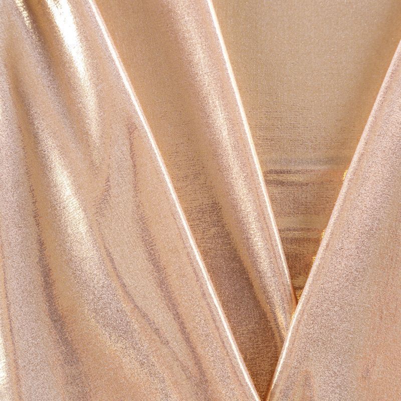 Эффектное трикотажное полотно с мерцающим напылением. Материал очень пластичный, образует струящиеся мягкие складки, отлично тянется, не просвечивает, не мнется. Изнаночная сторона матовая, приятная на ощупь. Идеальный выбор для нарядных платьев, топов, маек, гимнастических и танцевальных костюмов.
