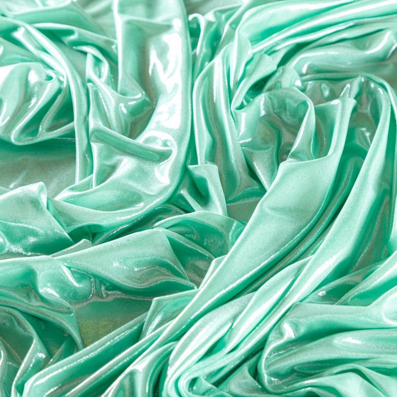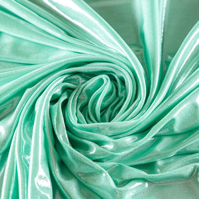 Эффектное трикотажное полотно с мерцающим напылением. Материал очень пластичный, образует струящиеся мягкие складки, отлично тянется, не просвечивает, не мнется. Изнаночная сторона матовая, приятная на ощупь. Идеальный выбор для нарядных платьев, топов, маек, гимнастических и танцевальных костюмов.