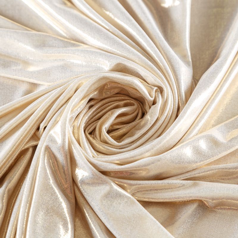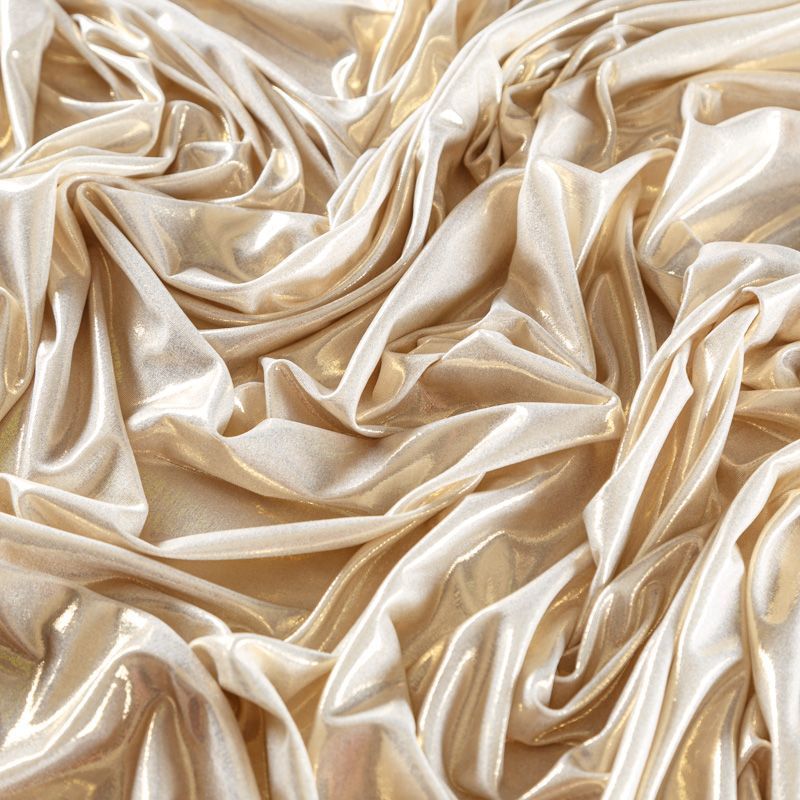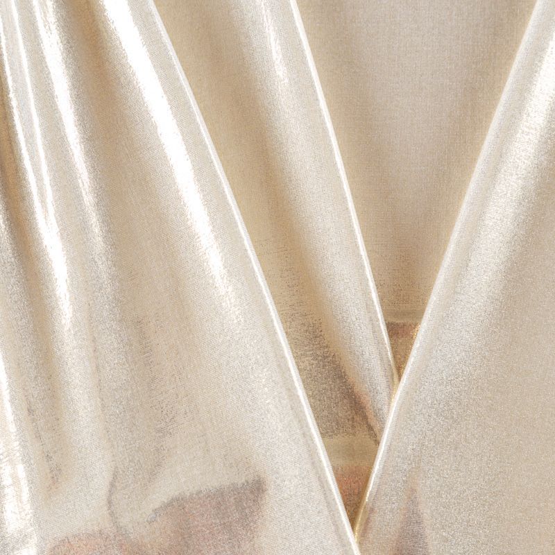 Эффектное трикотажное полотно с мерцающим напылением. Материал очень пластичный, образует струящиеся мягкие складки, отлично тянется, не просвечивает, не мнется. Изнаночная сторона матовая, приятная на ощупь. Идеальный выбор для нарядных платьев, топов, маек, гимнастических и танцевальных костюмов.