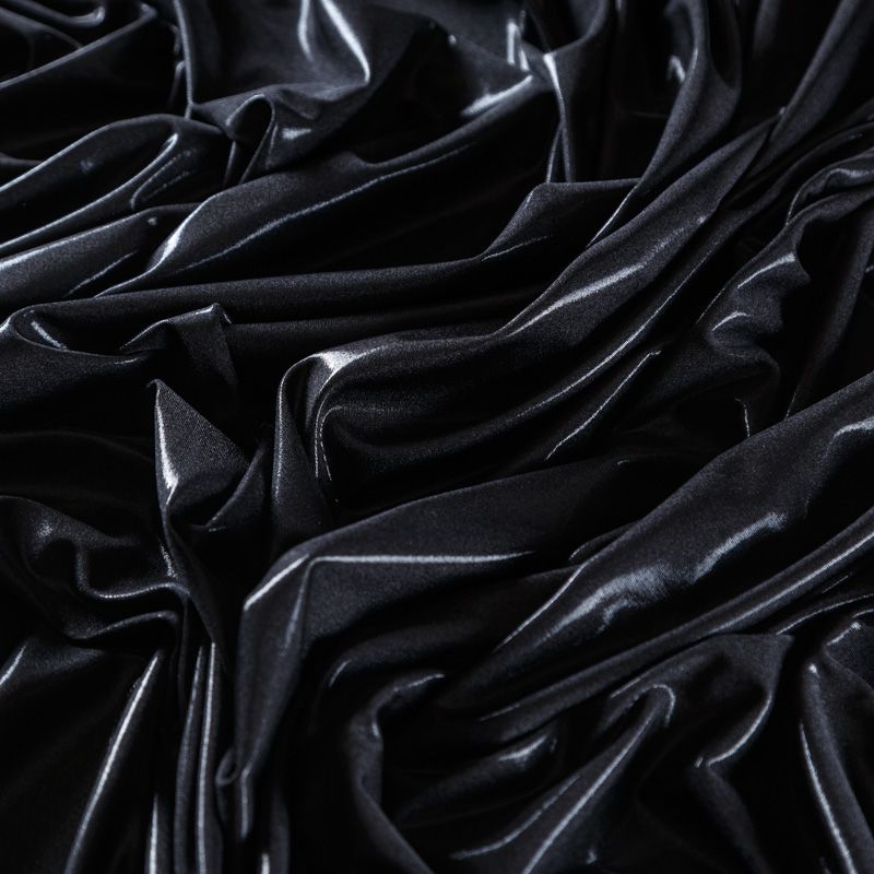 Эффектное трикотажное полотно с мерцающим напылением. Материал очень пластичный, образует струящиеся мягкие складки, отлично тянется, не просвечивает, не мнется. Изнаночная сторона матовая, приятная на ощупь. Идеальный выбор для нарядных платьев, топов, маек, гимнастических и танцевальных костюмов.