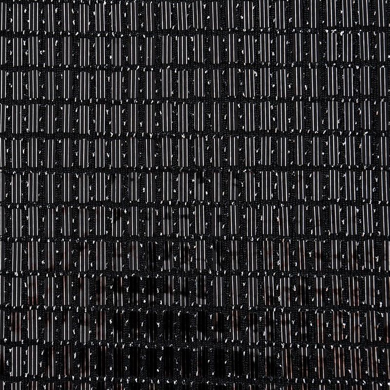Трикотажное черное полотно с блестящими глянцевыми пайетками и серебристой люрексной нитью. Декор накатан на основу, поэтому будет комфортен в носке. Ткань пластичная, прекрасно драпируется и укладывается в складки, легко садится по фигуре за счёт основы с эластаном, не прозрачная, позволит шить изделия без подклада. Идеально подойдет для пошива нарядных вечерних образов: платья, юбки, топа, туники, широких брюк, жакета, кардигана.