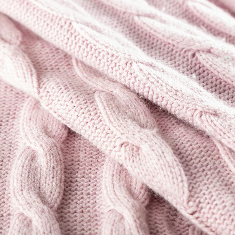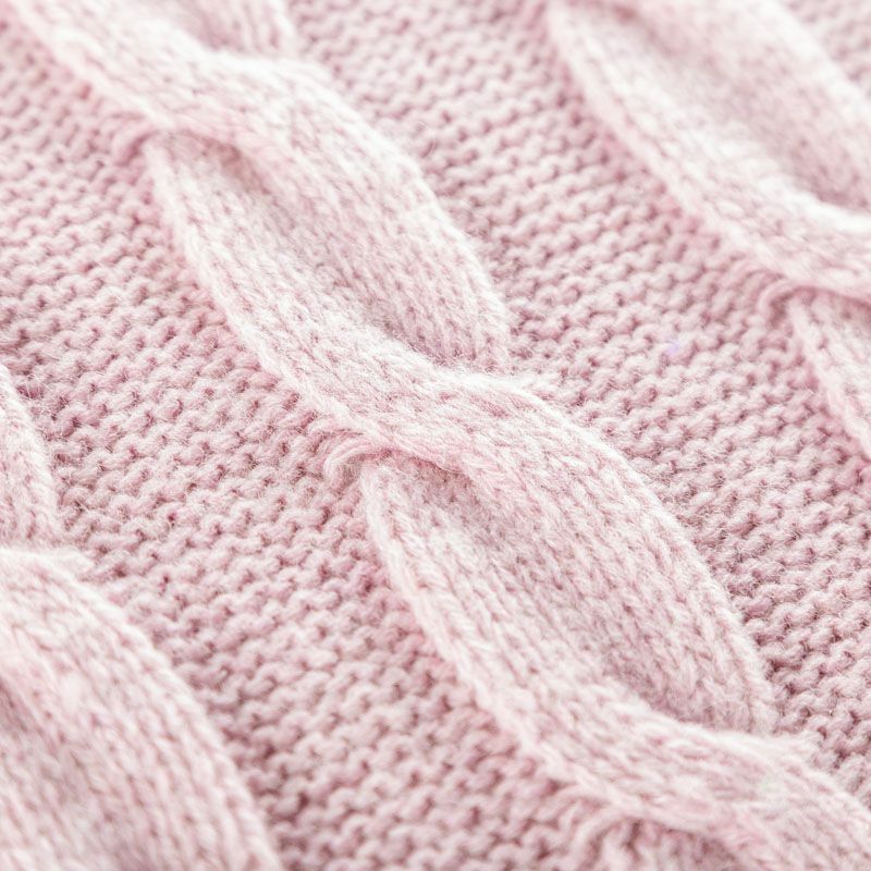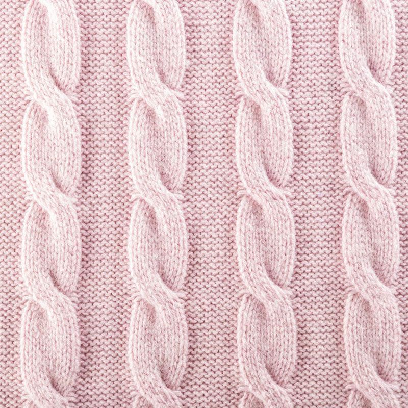 Итальянский шерстяной трикотаж пудрово-розового оттенка с крупными ажурными вязаными "косами". Полотно плотное, мягкое, эластичное, не просвечивает. Прекрасно подойдет для пошива теплых, объемных уютных свитеров, кардиганов, жилета, платьев, шарфов, палантинов, пончо или снудов.