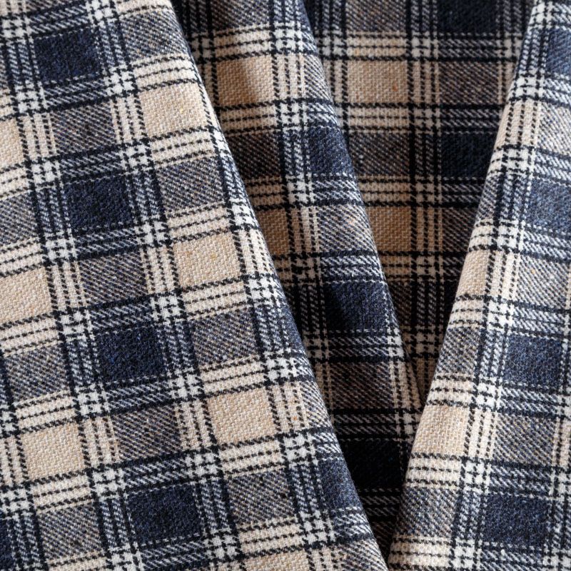 Фактурная и плотная твидовая ткань с добавлением хлопка в красивую бежево-синюю клетку. Ткань мягкая, пластичная, приятная на ощупь. Хорошо драпируется и образует формоустойчивые складки. Твид отлично подходит для пошива костюмов, пальто, пиджаков, брюк и курток, юбок, жилетов, головных уборов в классическом стиле.