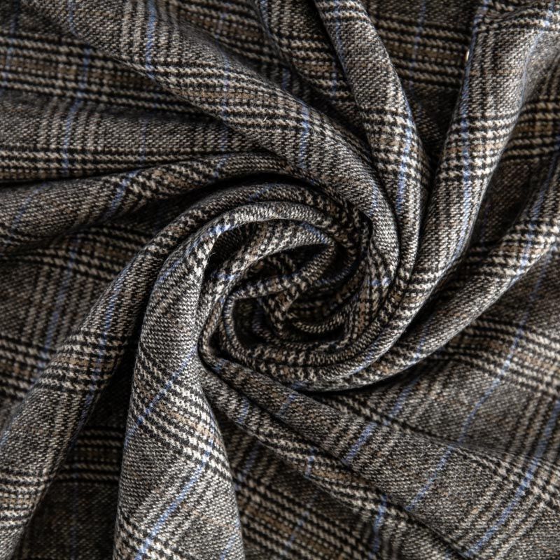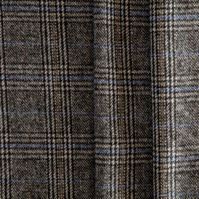 Фактурная и плотная твидовая ткань с добавлением натуральной шерсть в красивую и сложную клетку тартан. Материал саржевого переплетения, слегка шероховатый на ощупь. Хорошо драпируется и образует формоустойчивые складки. Ткань отлично подходит для пошива костюмов, пальто, пиджаков, брюк и курток, юбок, жилетов, головных уборов в классическом стиле.