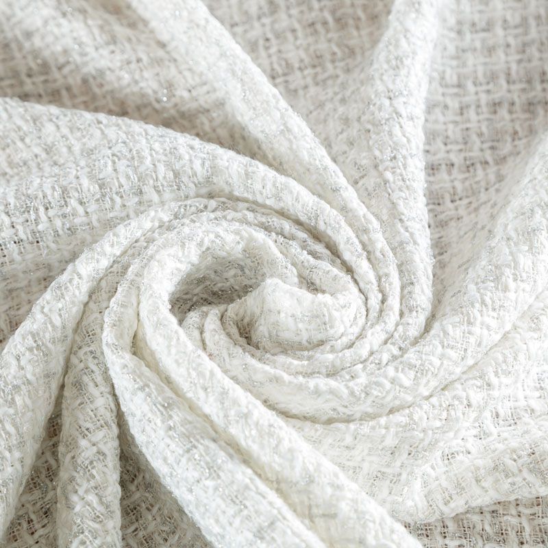Мягкая, пластичная и объемная ткань, с разреженной и рельефной вывязанной структурой. Буклированный твид в стиле Шанель буквально соткан из различных по толщине и текстуре нитей, образующих рисунок в виде клетки. В плетение добавлена блестящая люрексная нить. Твид идеально подходит для пошива платьев, юбок, жакетов, легких пальто, эффектных бомберов и курток.
