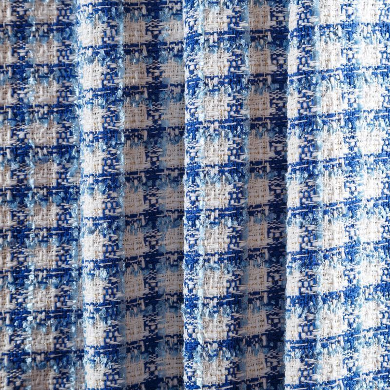 Мягкая, пластичная и объемная ткань, с разреженной и рельефной вывязанной структурой. Буклированный твид в стиле Шанель буквально соткан из различных по толщине и текстуре нитей, образующих рисунок в виде клетки. В плетение добавлена блестящая люрексная нить. Твид идеально подходит для пошива платьев, юбок, жакетов, легких пальто, эффектных бомберов и курток.