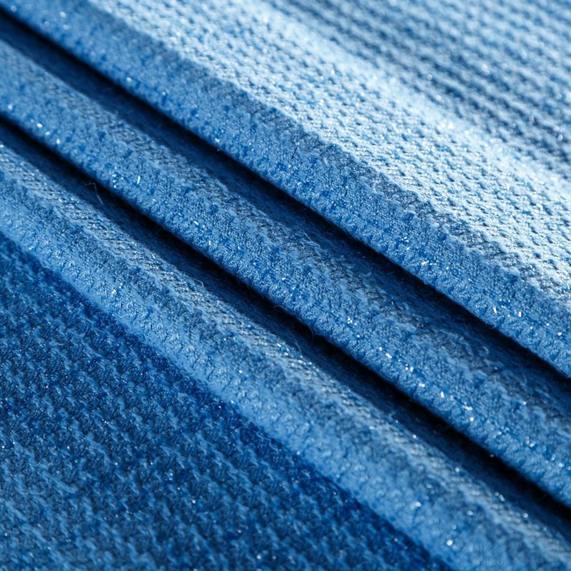 Твид средней плотности с рельефной поверхностью голубого оттенка с добавлением акцента в виде люрексовой нити, которая имитирует клетку и добавляет ткани нарядности. Твид пластичный, хорошо драпируется, умеренно держит форму, прекрасно подойдет для пошива жакетов на подкладе, жилетов, кардиганов, легких пальто, юбок и платьев.
