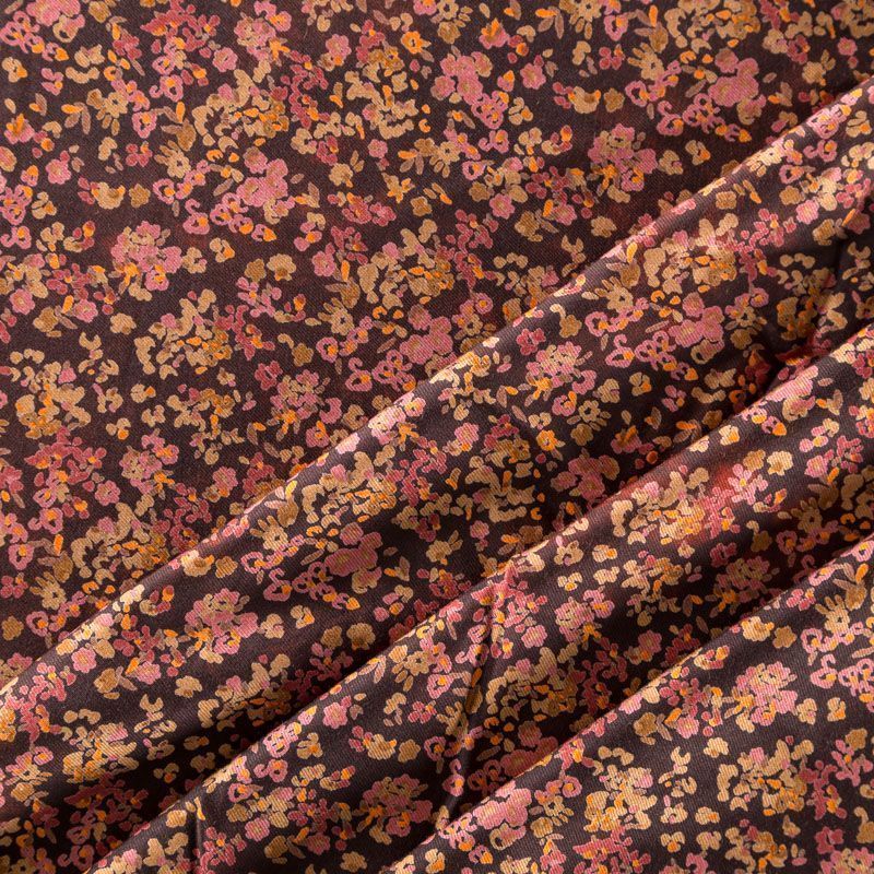 Плотная, мягкая и слегка шелковистая ткань, имеет саржевое плетение и характерный диагональный рубчик на поверхности. Отлично сохраняет форму, не сильно мнется и не деформируется в процессе эксплуатации. Красиво ложится в складки и струится, поэтому прекрасно подойдет на длинные драпированные юбки и платья, на свободные брюки или шорты, топы.