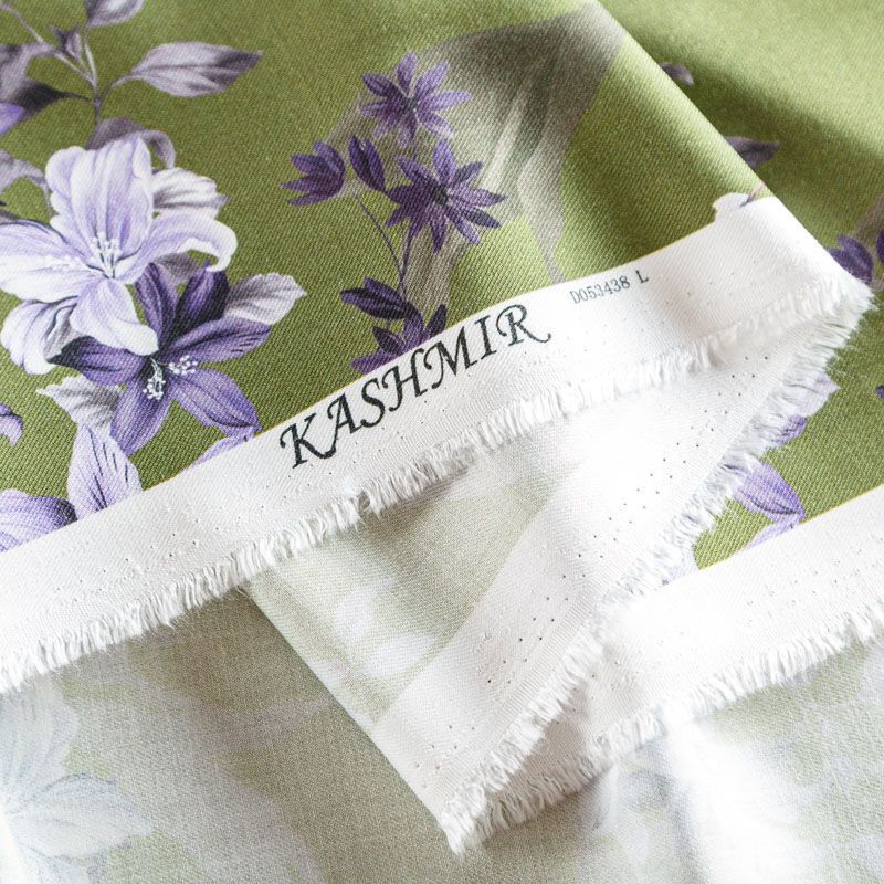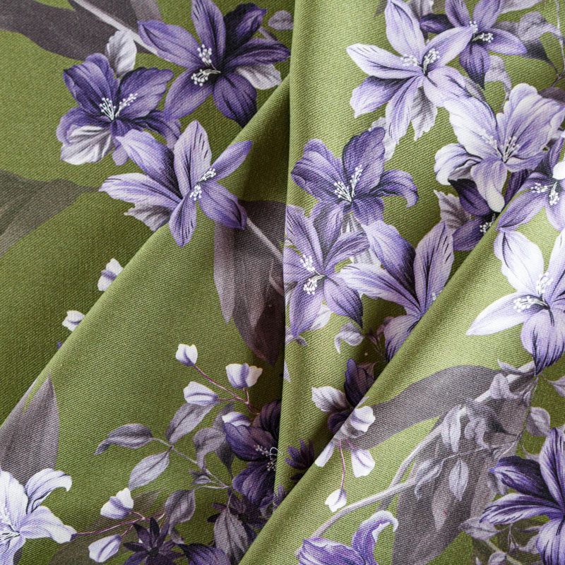 Твил-штапель 069-06477 зеленый хаки принтованный