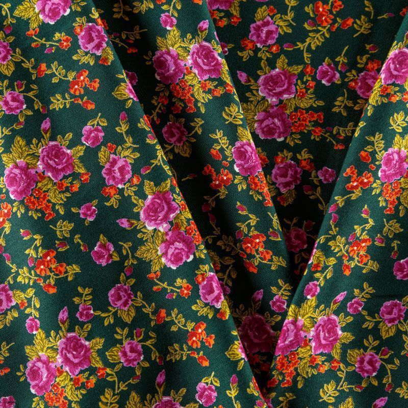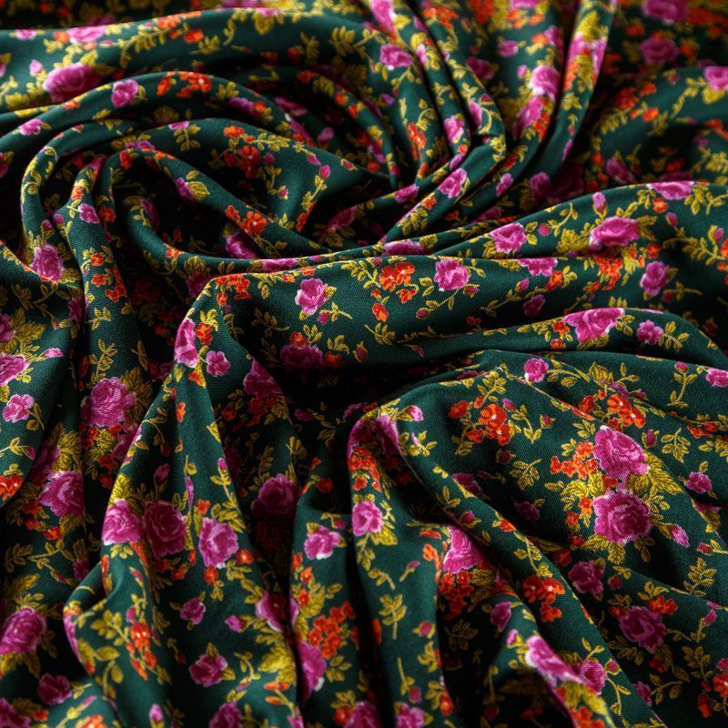Твил-штапель 069-08291 темно-зеленый принтованный
