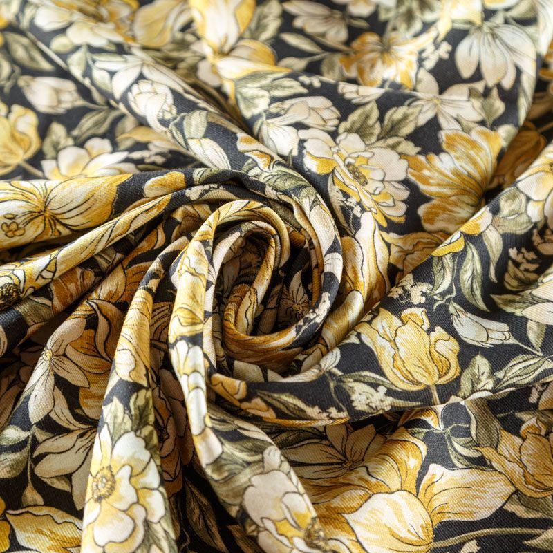 Твил-штапель 069-08631 черный принтованный в Северодвинске