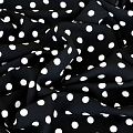 Плотная и мягкая ткань, имеет саржеве плетение и характерный диагональный рубчик на поверхности. Отлично сохраняет форму, не сильно мнется и не деформируется в процессе эксплуатации. Красиво ложиться в складки, поэтому прекрасно подойдет на длинные драпированные юбки и платья, на свободные брюки или шорты, топы. Размер гороха 1см