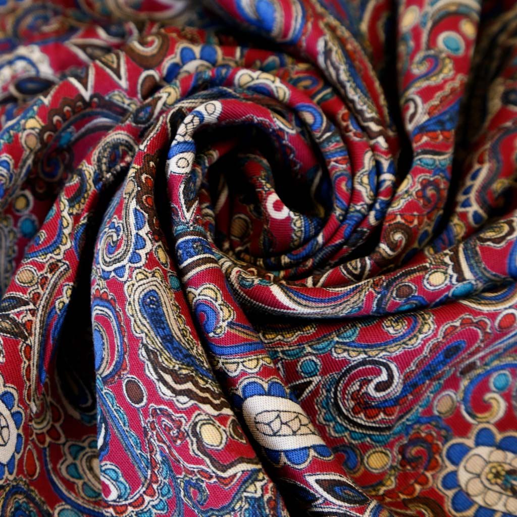 Твил-штапель К34-039 вишнево-красный принтованный в Северодвинске