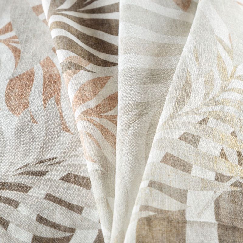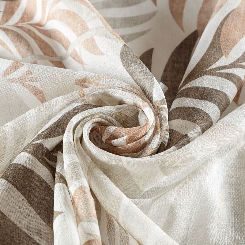 Полупрозрачная тюлевая ткань под лен с выразительной матовой рельефной поверхностью со стилизованным растительным принтом в бежево-коричневой гамме выглядит очень натурально и естественно. Красиво смотрится на любом карнизе и прекрасно подойдет для оформления различных помещений. Может использоваться как самостоятельно, так и в комплекте с плотными шторами. Нижний край оформлен утяжелителем.