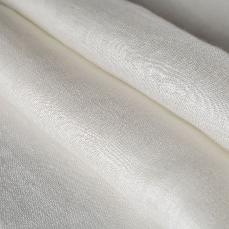 Ткань изготовлена изо льна методом полотняного переплетения. Она прочная, достаточно плотная,  держит форму и обладает ярко выраженной фактурой. Эта ткань подойдет для пошива штор, римских штор, предметов столового белья. Её можно использовать для декора интерьера загородного дома или веранды.
