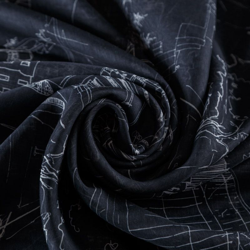Тюль лен Т466-01-06 черный принтованный в Северодвинске