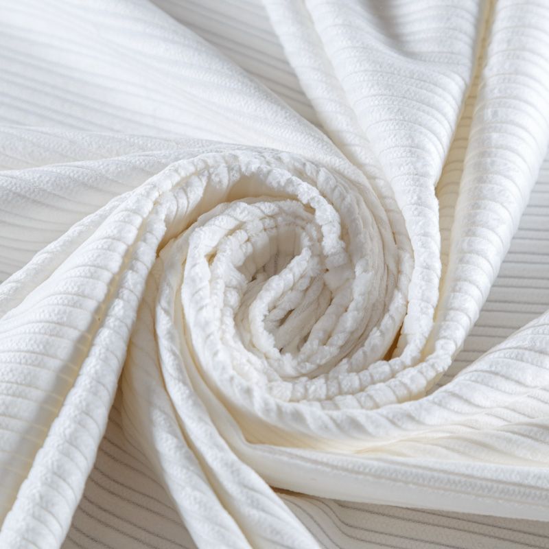 Итальянский костюмно-плательный вельвет из хлопка в молочном цвете. Очень приятный тактильно, поверхность бархатистая в широкий мягкий рубчик, не тянется, не просвечивает. Подойдет для пошива костюма, жакета, платья, сарафана, юбки или брюк.