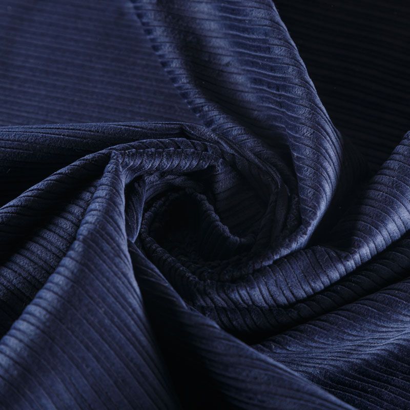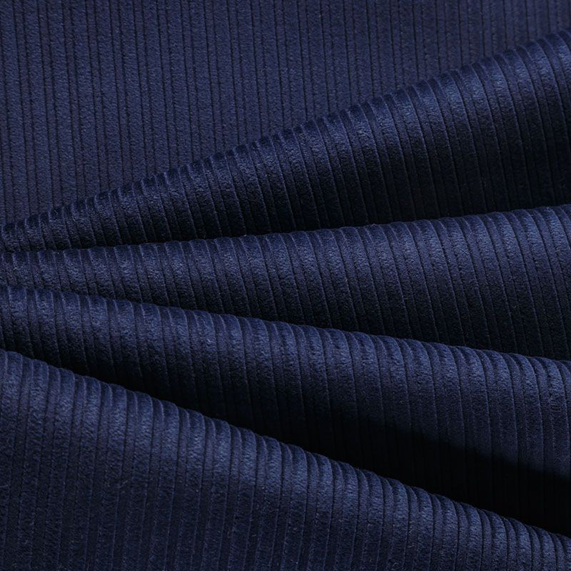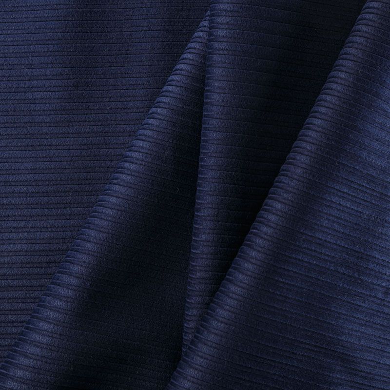 Итальянский костюмно-плательный вельвет из хлопка в глубоком синем цвете. Очень приятный тактильно, поверхность бархатистая в мягкий широкий рубчик, не просвечивает, хорошо драпируется, держит форму. Подойдет для пошива костюма, жакета, платья, сарафана, юбки или брюк.