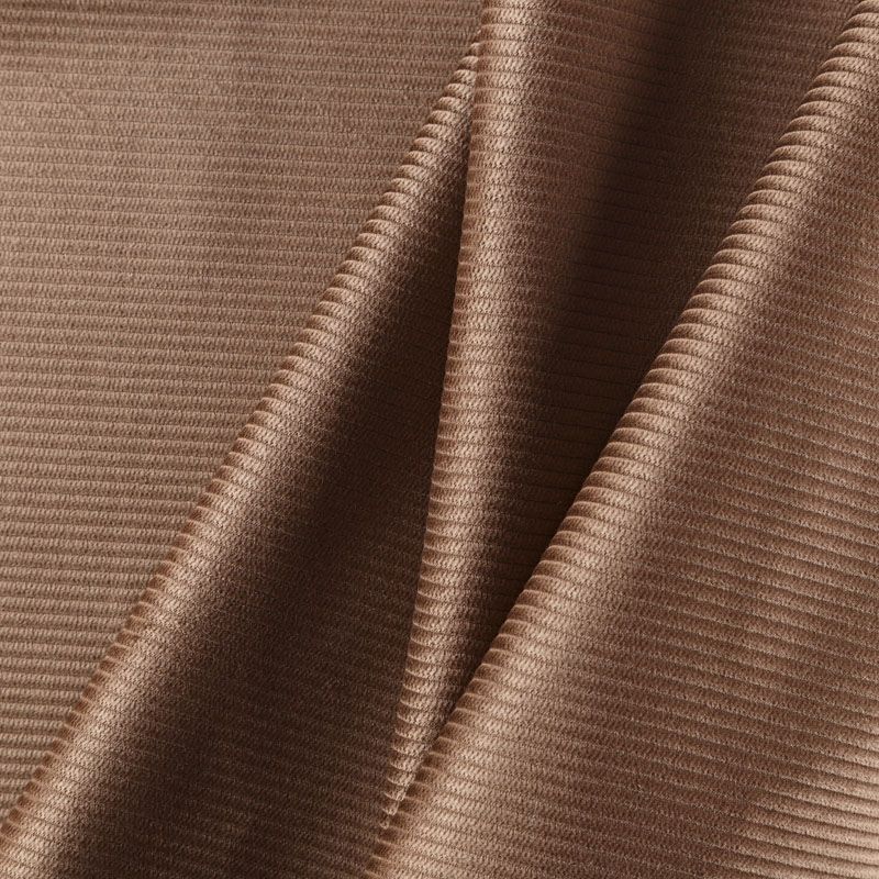 Итальянский хлопковый вельвет костюмно-плательной плотности коричневого оттенка. Ткань имеет матовую фактурную поверхность в тонкий рубчик, ворс короткий, мягкий и приятный на ощупь. Хорошо драпируется и держит форму. Прекрасный вариант для пошива костюма, юбки, широких брюк, шорт, комбинезона, жакета, куртки или тренча.
