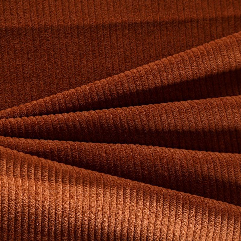 Плательно-костюмный вельвет средней плотности, но удивительно мягкий с матовым блеском и бархатистой поверхностью. За счет вытравки ворса лицевая сторона фактурная, в рубчик средней толщины. Ткань очень пластичная, хорошо и мягко драпируется, не мнется. Прекрасно подходит для пошива костюмов, жакетов, платьев, юбок, брюк, шорт, а также  для изготовления даже детской одежды.