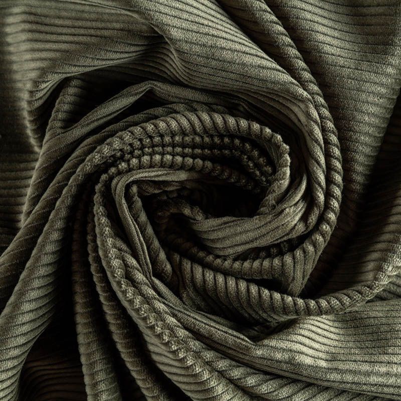 Костюмно-плательный вельвет из хлопка в красивом зеленом оттенке цвета хаки. Очень приятный тактильно, поверхность бархатистая, рубчик средней ширины, не тянется, не просвечивает. Подойдет для пошива костюма, платья, юбки, брюк.