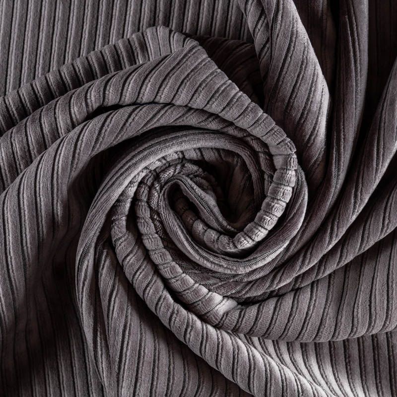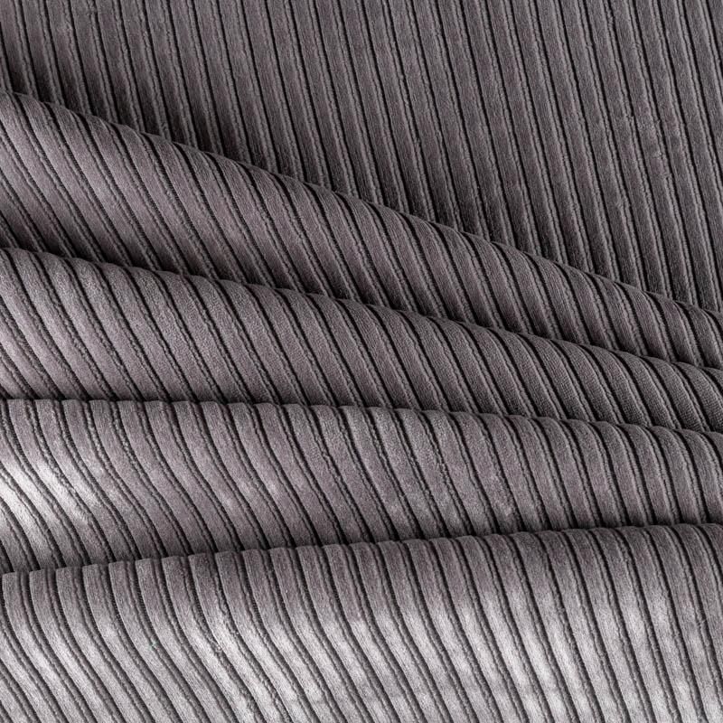 Костюмно-плательный вельвет на трикотажной смесовой основе в сложном сером оттенке. Очень приятный тактильно, плотный, поверхность бархатистая в широкий рубчик, тянется, не просвечивает. Подойдет для пошива костюма, жакета, платья, сарафана, юбки или брюк.